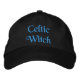 A cute simple, pretty turquoise embroidered black baseball cap with the quote Celtic Witch. This witch hat can be personalised to a name or other text. A witchy birthday gift idea.