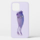 Nerdy character iPhone case with a watercolor illustration of a smiling blueish purple character with nerd glasses, tentacles, big teeth and funny hair. This funny monster design will appeal to people who love fun, silly, geeky art.