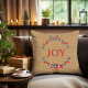 Beautiful classic seasonal Scandinavian Christmas holiday floral wreath, and fun JOY greeting wish on a brown faux burlap woven texture pattern. A classy December winter season design for the interior designer, or cottage country style lover who loves winter Christmas holiday themes. Original modern cushion for decorating the living room, family room or bedroom of your log cabin, cottage, lake or river vacation home.