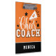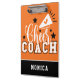 Cute Cheer Coach Personalized Orange and Black Clipboard