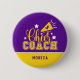 Cute Cheer Coach Personalized Purple & Yellow Button