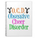 OCD, Obsessive Cheer Disorder is a funny gift for a cheerleader. A cute play on words featuring two cheerleaders jumping with pom poms.