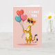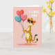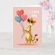 Designed with a cute cheetah as the main character, this card sits on a soft pastel pink background. The cheetah is bright yellow with black spots and a big, friendly smile. It wears red heart-shaped sunglasses that make it look relaxed and sweet 💘. In one paw, it holds three heart balloons floating up: one red, one blue, and one light pink. In the upper right, the words “I LOVE YOU” appear in simple white letters that stand out clearly against the pink. The overall look feels romantic and cheerful, with lots of hearts and warm colors ❤️. It’s an easy, happy way to share Valentine’s Day feelings with someone you care about 😘.