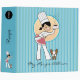 Binder with illustrated cover showing a little cartoon girl wearing apron, and holding dog food on one hand, and a little french bulldog waiting for it.