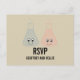 Sweet and nerdy Cute Chemistry Wedding RSVP Postcard featuring a quirky pair of bubbling lab beakers in light blue and light pink. This whimsical science themed response postcard is perfect for the couple who would like their playful and fun personalities to shine through with a geeky and memorable wedding design. Easy to customize, simply add your own personalized text in the spaces provided or click on the "Customize It" button to find more personalization options.