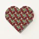 A watercolor ai illustration pattern of shiny red cherries, sage green foliage and blue and green checkered plaid heart shaped notebook.