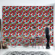 A watercolor ai illustration pattern of shiny red cherries, sage green foliage and blue checkered plaid. stick and peel wallpaper.