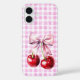 Cute Cherry Coquette Bow Pink Gingham Case-Mate iPhone Case