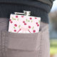 Cute whimsical cherries personalized flask with cow pink bow coquette.