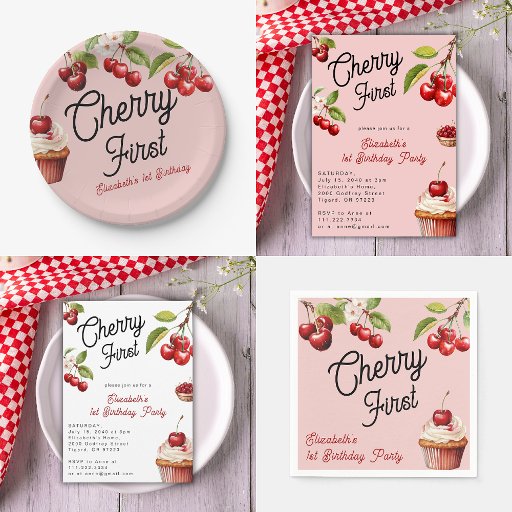 You can apply the design of your Cute Cherry On Top First 1st Birthday Invitation to other items for a party such as stickers. The same goes for all of our digital products - any digital product/ design you purchase can also be used on any Zazzle product.