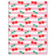 This playful design features bright red cherries scattered across soft pink and white stripes, creating a cheerful, retro-inspired aesthetic. The bold fruit illustrations paired with the candy-stripe backdrop give the artwork a sweet, nostalgic charm. Perfect for lovers of cute patterns, vintage themes, fresh fruit motifs, or fun, colorful stationery designs that add personality and style to everyday items.