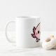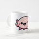 This delightful design features a whimsical axolotl, a neotenic salamander known for its regenerative abilities. The axolotl is illustrated in a charming, cartoonish style with a round body and an oversized head. Its soft pink skin is accented with darker pink highlights on the gills, which resemble delicate, leafy fronds. The creature’s wide, expressive eyes and broad smile give it an endearing and friendly appearance. Its short limbs and gently curling tail add to the playful and imaginative nature of the design. This adorable axolotl is perfect for those who love unique and cute aquatic creatures.