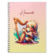 Personalized notebook. Adorable cartoon chibi girl playing a harp.