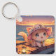 Cute Chibi Kitten at the Harbor Sunset – Whimsical Keychain