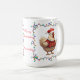 Bring a touch of festive cheer to your morning coffee with this adorable holiday themed mug. Featuring a lovable chicken all dressed up in cozy festive clothes. This design captures the heartwarming charm of the season, surrounded by Christmas lights and brimming with holiday spirit. The cute chicken is sure to bring a smile to your face. This mug is perfect for sipping hot cocoa, tea, or your favorite holiday brew. A great gift for chicken lovers, Christmas enthusiasts, or anyone who believes the best part of the season includes extra cuteness. You can edit the text and put a favorite color background.