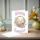 Looking for the perfect Easter card to send to your loved ones? This adorable watercolor design features cute yellow chicks in an Easter basket decorated with pastel Easter eggs and flowers, with the phrase "Happy Easter" on the cover. But that's not all - on the inside, you'll find a heartfelt message that reads "May your Easter basket be overflowing with love, peace, and lots of sweet treats!" This card is sure to bring a smile to anyone's face and make their Easter celebrations even more special. So why wait? Order yours today and make someone's Easter unforgettable!