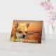 Chihuahua posing in front a desert scene customizable greetings card. Text on front reads "Happy birthday!" and text inside reads "Hope you have a great day!" Text can be personalized.