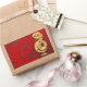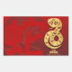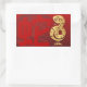 Golden traditional Chinese Paper cut-out of a cute Snake as central motif with the same paper cut-out in large size and in dark red color + Large Chinese ideogram of the snake as background. Design on horizontal rectangular sticker. Matching greeting card and holiday postcard. Perfect for Chinese New Year of the Snake 2025.