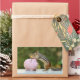 Nature photo of a cute chipmunk trying to put a peanut into a pink piggy bank. The chippie is standing on a white deck railing with some out-of-focus green trees in the background. A penny saved is a penny earned, or according to our chipmunk friend, a peanut saved is a peanut earned...either way, this chipmunk is saving his "money" for the winter. This cute chipmunk will delight any nature lovers or anyone who's a fan of our striped furry friends. Or maybe you could just use a chuckle during our tough economic times...either way, this chipmunk is saving for a rainy day using some funny money!