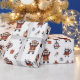 An array of forest animals plus penguins in winter garb and Christmas presents pattern.