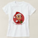 Women's T-shirt with an illustration of a cute smiling happy baby girl or boy, the baby is wearing red and white clothes and holding a present; with editable text template for your name or message, Christmas holidays design