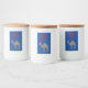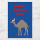 This awesome set of Christmas food container labels features a digital art image of a cute sandy brown colored Dromedary Camel with beautiful long eyelashes and a single hump on its back. The camel is dressed ready for celebrating Christmas with a red and white Santa hat on its head. The camel features in the Bible and is a traditional symbol of Christmas. There is custom text so you can include a message.