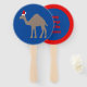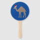 This awesome pack of Christmas hand fans features a digital art image of a cute sandy brown colored Dromedary Camel with beautiful long eyelashes and a single hump on its back. The camel is dressed ready for celebrating Christmas with a red and white Santa hat on its head. The camel features in the Bible and is a traditional symbol of Christmas. There is custom text on the back so you can include a message for your guests.
