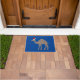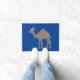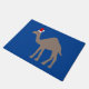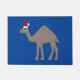 This awesome doormat features a digital art image of a cute sandy brown colored Dromedary Camel with beautiful long eyelashes and a single hump on its back. The camel is dressed ready for celebrating Christmas with a red and white Santa hat on its head. The camel features in the Bible and is a traditional symbol of Christmas.