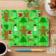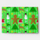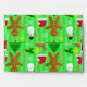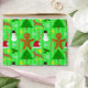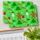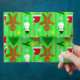 This cute holiday design has a collage of funny and festive Christmas drawings on it. The design includes a Christmas tree, a reindeer, a snowman, a gingerbread man, candy canes, mistletoe, a Santa hat and snowflakes and stars. The background is done in stripes, in two shades of light green. This is a pretty and original design for the holiday season.
