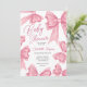 Cute Christmas Coquette Pink Bow Baby Shower Invitation