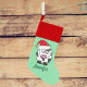 This beautiful Christmas cow stocking features a cute Holstein wearing a red Santa hat. This pretty personalized farm animal Christmas stocking is decorated with a lovely mint green holiday background. Personalize with your own text at the bottom for a fun kids stocking gift.