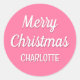 Cute Christmas Custom Kids Name Typography Pink Classic Round Sticker