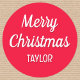 Cute Christmas Custom Kids Name Typography Red Classic Round Sticker