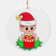 Cute Christmas Elf & Gift Box Ceramic Ornament