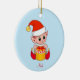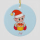 Cute Christmas Elf on Light Blue Ceramic Ornament