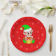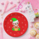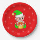 Cute Christmas Elf & Snowflakes on Red Paper Plates