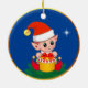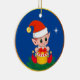 Cute Christmas elf & star on blue Ceramic Ornament