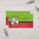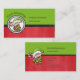 Business card template with a cute Christmas elf in a festive green outfit holding onto a red and white striped candy cane. Merry Christmas written in a curved text.