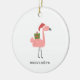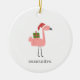 Cute Christmas Flamingo Illustration Personalized Ceramic Ornament