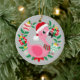 Cute Christmas Flamingo Wreath Granddaughter Ceramic Ornament