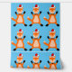 This awesome patterned wallpaper features a digital art image of a cute Christmas Fox. The fox is orange with white with a bushy tail, black whiskers and a black nose. It also has beautiful yellow eyes. and is wearing a red and white Santa hat on its head.