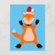 This awesome Christmas Postcard features a digital art image of a cute Christmas Fox. The fox is orange with white with a bushy tail, black whiskers and a black nose. It also has beautiful yellow eyes. and is wearing a red and white Santa hat on its head.