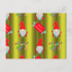 An adorable pattern of cute little Christmas elves (or gnomes, or Santa's helpers!) surrounded by Christmas stockings, candy canes and little red signs wishing everyone a Merry Christmas, all on an eye-catching chartreuse green background.