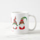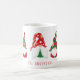 Cute and cheerful personalized Christmas holiday mug featuring five cute nordic gnomes with red and green seasonal Scandinavian style hats and tunics. Add your name or names in fun red typography.
