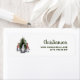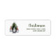 Three cute Christmas gnomes in front of a Christmas tree return address labels customized with your name and address.