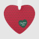 Holiday Folk Art design in Christmas colors has pretty green hearts sprinkled over a red background, and features a large heart design in the center, showcasing your or your pet's monogram and name. On the back you'll find keepsake text, that reads "Christmas 20xx". Personalize with your monogram, name and the year.