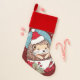 I purchased this for my new kitty for Christmas. She is a tuxedo cat and the stocking shows a tuxedo cat. Just purr-fect. I only wish the name could have been placed on the top red band. This would’ve matched all my other stockings. However, it is really adorable! Again, I really wish the name could’ve been put on the red band on the top of the stocking. It would’ve matched all my other stockings. Her name did come out nice.