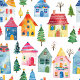 Cute Christmas Houses Holiday Postcard