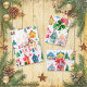 Cute Christmas houses that are so festive and colorful decorate these wrapping paper sheets. They form fun scenes of wintry lanes of little homes in the white snow, intermixed with star-topped decorated trees. The watercolor patterns have a retro origin, so popular today. Each of the three papers has a different scene, that work very well together as a set or individually.