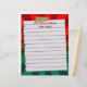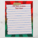 Fun letterhead, with red letters text ready for your custom name or any text, on torn, lined notebook paper taped to a cool, fun graphic burst design of red and green background. Perfect for that Christmas and holiday gift list for kids, teens and men and women of all ages! Great for your Christmas letter to family and friends and great as shopping and chores to do list reminders also!